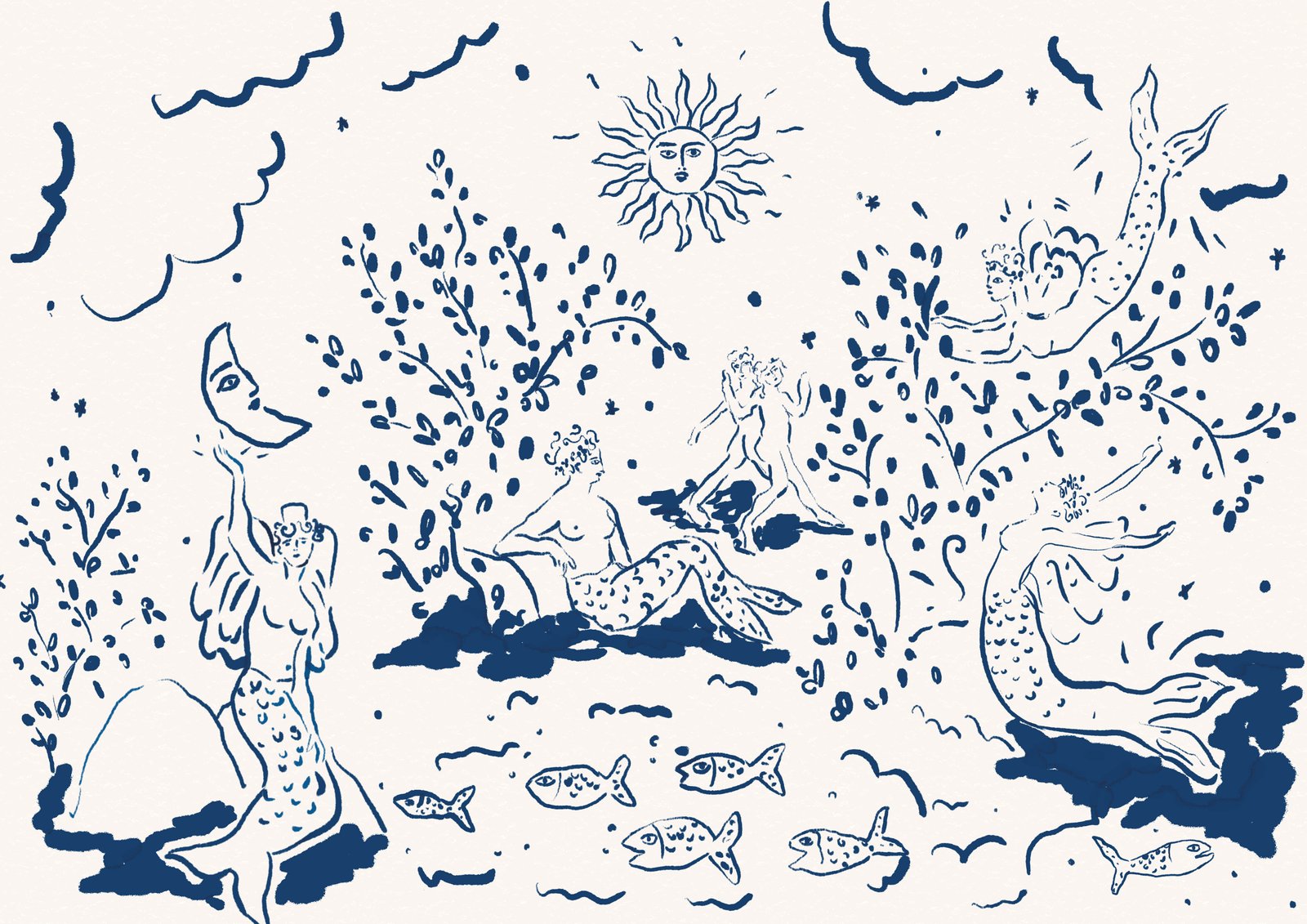 I collaborated with the New York-based Studio Galeón on an exciting project for Hotel Petunia by Baumier Hotels in Ibiza. My role involved creating a series of illustrations and artworks inspired by the rich mythology of Es Vedrà, the mythical island off Ibiza’s coast, renowned for its folklore and legends. Es Vedrà is often described as a source of magnetic energy, a home to mythical mermaids, and even the site of the legendary Atlantis. Inspired by these stories, I created pieces that reflect the island’s otherworldly charm and its profound ties to both nature and mythology.